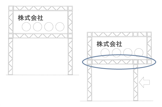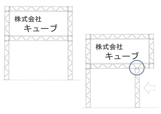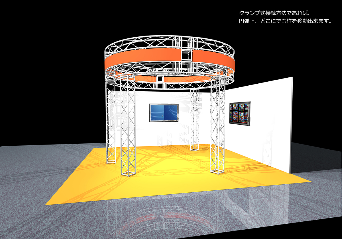 クランプ式トラスは接続箇所にクランプの「出っぱり」が出来てしまうので照明やサインの模様替えのときに